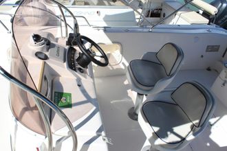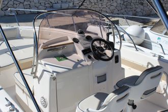 The Saver Open 690 is a spacious, fast, and economical boat that offers both comfort and reliability on the water. Powered by a Yamaha 225 HP engine, it reaches a top speed of 35 knots and cruises comfortably at 23 knots. With room for up to nine passengers, it’s a great choice for families or groups looking to explore the beautiful Croatian coastline. The boat features a bimini top for sun protection, which can be folded away if you prefer to enjoy the open sky and sunshine.